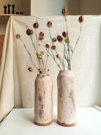 Misure: 22 cm di altezza e 8 cm diametro (vaso grande) e 20 cm di altezza e 8 cm diametro il vaso piccolo.